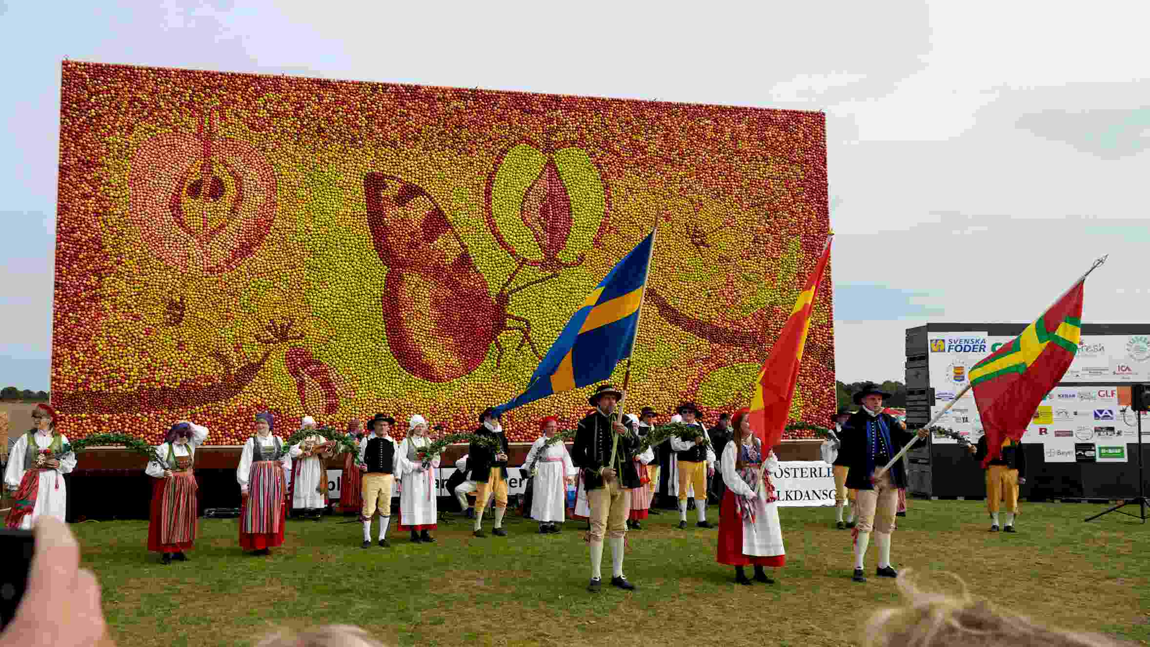 Österlen är så starkt förknippat med äpplen, fantastiska vyer över böljande landskap och havet som aldrig är långt borta. Turen till Österlen går av stapeln en vecka efter avtäckningen av äppeltavlan – då är den fortfarande lika vacker, men vi slipper trängas. Äppeltavlan är ett storslaget konstverk som har skapats av 35 000 äpplen. Vi besöker Kiviks musteri och har möjlighet att handla av deras stora utbud av smakrika produkter.